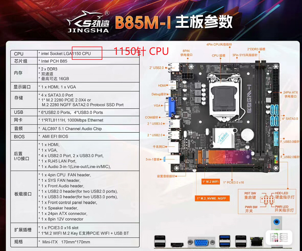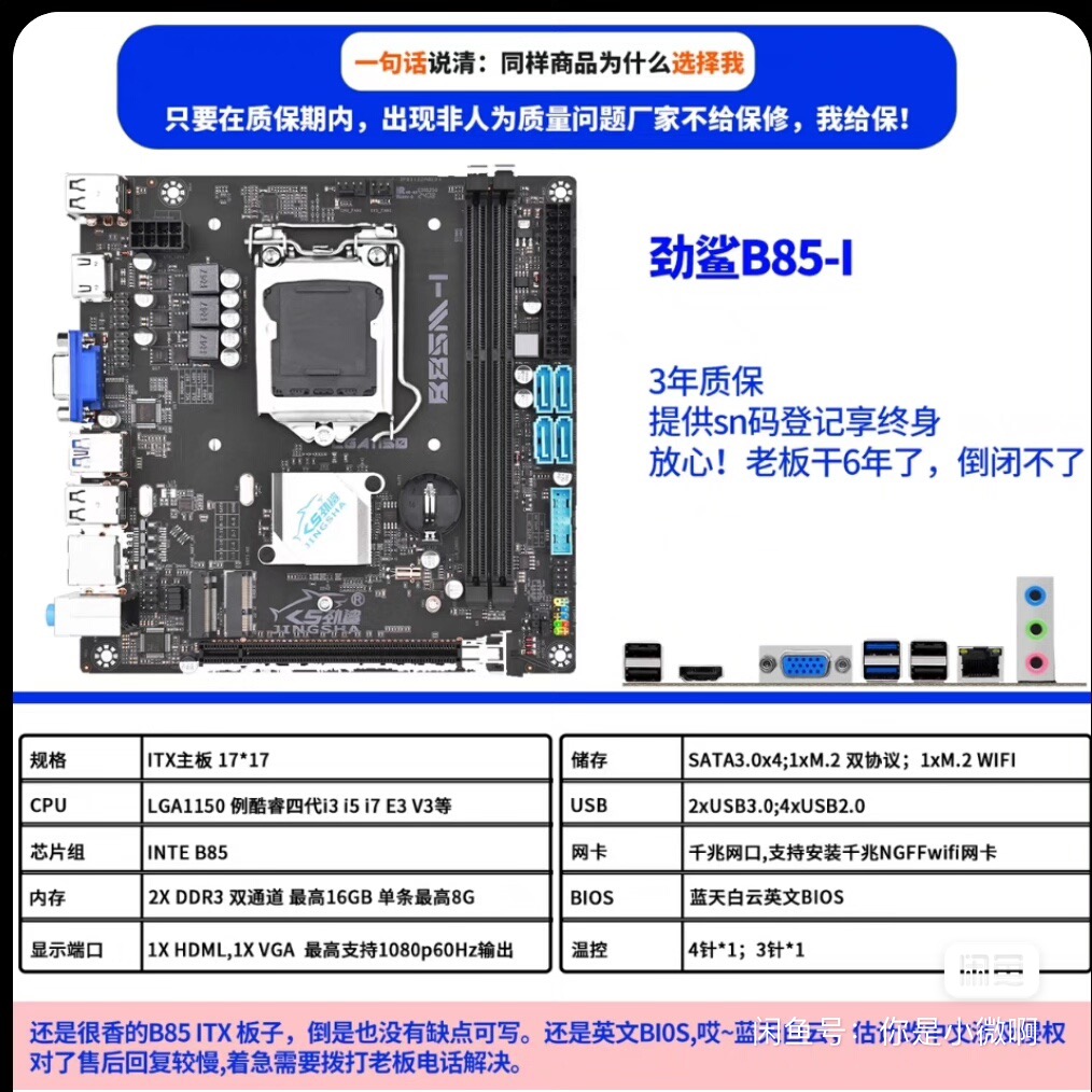 如下图所示,这就是我买的主板,人家卖家已经很详细的把需要其它配件规格填好了,我们只需要照抄去网上搜相关的配件就行。