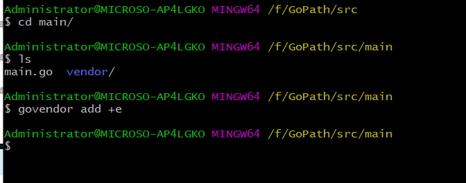 请注意,如果输入命令提示govendor这个命令没有找到,请自行将Gopath下/bin目录中的govendor.exe文件添加进环境变量