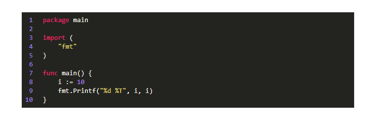 在上面的程序中,i 的类型在编译时就知道了,然后我们在下一行打印出 i 。这里没什么特别之处。